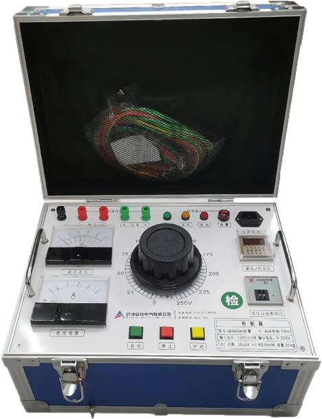 該交直流試驗變壓器控制箱控制箱的容量是與調(diào)壓器的容量而標(biāo)稱,如果和耐壓測試儀(短時30min以內(nèi)工作制)配套工作,可根據(jù)中華人民共和國電力行業(yè)標(biāo)準(zhǔn)“DL474.4-92”之規(guī)定:P0=0.75P選配。式中P0—耐壓測試儀容量;P—調(diào)壓器容量。如用于電器專業(yè)工廠產(chǎn)品作批量試驗,調(diào)壓器容量應(yīng)等于耐壓測試儀容量,即:P0=P。