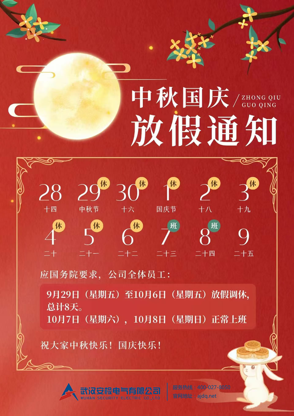 根據(jù)國(guó)務(wù)院辦公廳通知精神,現(xiàn)將2023年中秋節(jié)、國(guó)慶節(jié)放假安排通知如下: